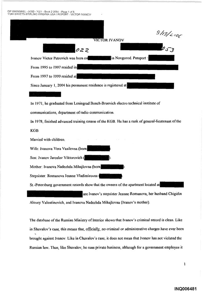 Криминальные связи Виктора Иванова и Владимира Путина. Секретное досье, опубликованное лондонским судом